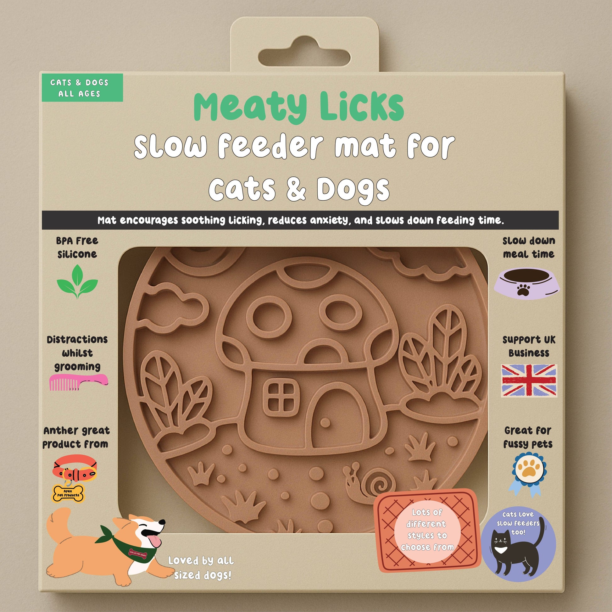 A mushroom design slow feeder in a mocha shade.